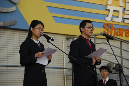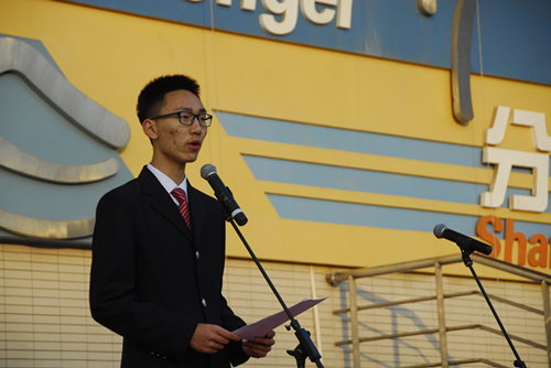 成:感谢王嘉成同学的精彩发言。正如他所说,对规则的尊重与遵守是南外生活的重要组成部分。通过他的提醒,以后在木桌上一定消失了从食堂外拿的饭盘,操场边也一定不再出现丢弃下的垃圾,晨会时更不会有台下的窃窃私语。