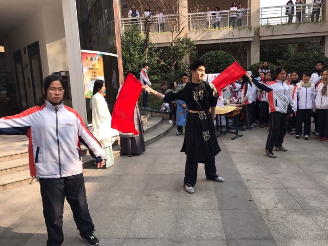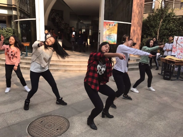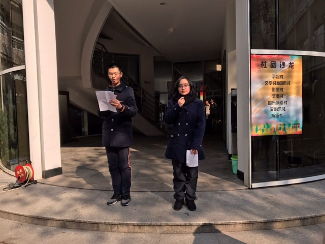 12月15日中午,旋转楼梯旁聚集着里三层外三层的同学,在这里,威尼斯官网2016-2017学年社团沙龙活动正开展得如火如荼。瑟瑟寒风一刻不停地吹,却没有吹熄同学们内心的火苗,他们组织有序地依次上场,把精彩而别致的演出呈现给所有老师同学,也呈现给冬日的南外。