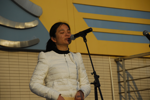 潘:我们请来的是南京盲校的陈慧姣同学。她刚出生时就因先天性白内障而双目失明。她爱好写作和朗诵,至今为止共创作过三十多首诗歌,一个话剧和一些小散文。2013年,她出版了自己的第一本文集《春暖花开的日子》。