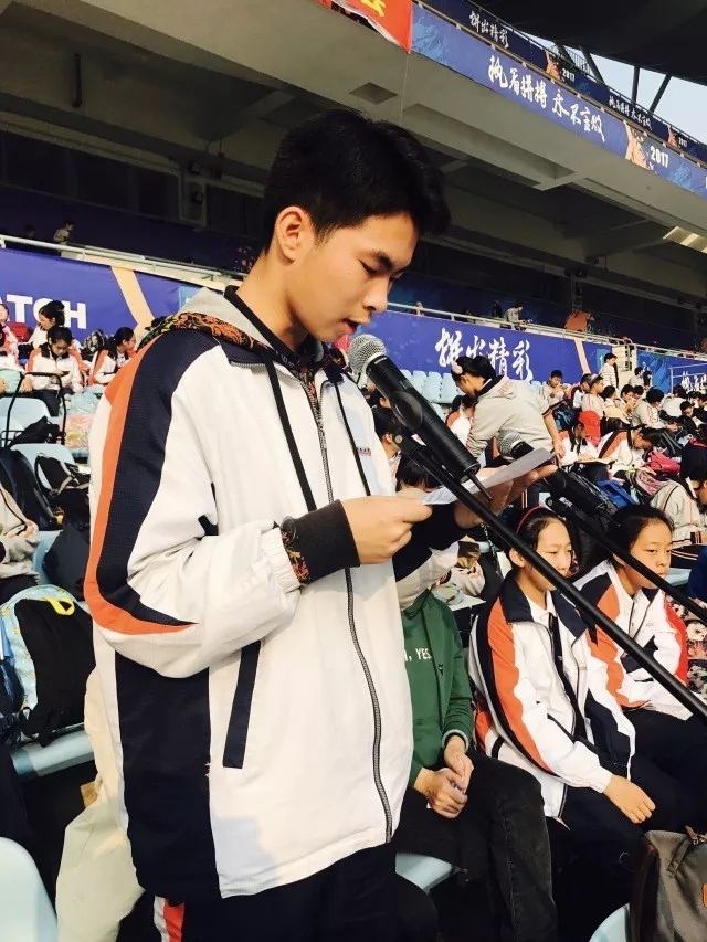 紧接着是运动员代表、学生会体育部长杨熙和发言。杨熙和同学强调了体育的重要性,鼓励大家强身健体、为国争光,在运动会上展现自我。