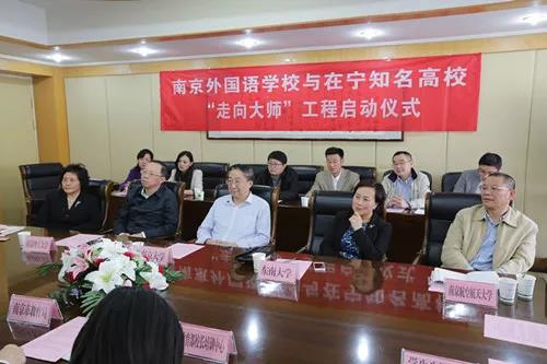 为了让学生尽早走进一流大学、科研院所与大师们交流,培养和发现自己的兴趣所在,为今后人生的规划和进入大学后的发展提供一个有效平台,2015年5月学校与南京大学、东南大学、南京理工大学、南京航空航天大学、中国药科大学等五所在宁知名高校共同启动“走向大师”工程。由南大、东大等五所高校热心于探索大、中学衔接项目的高水平专家学者来担任高中生专业导师。