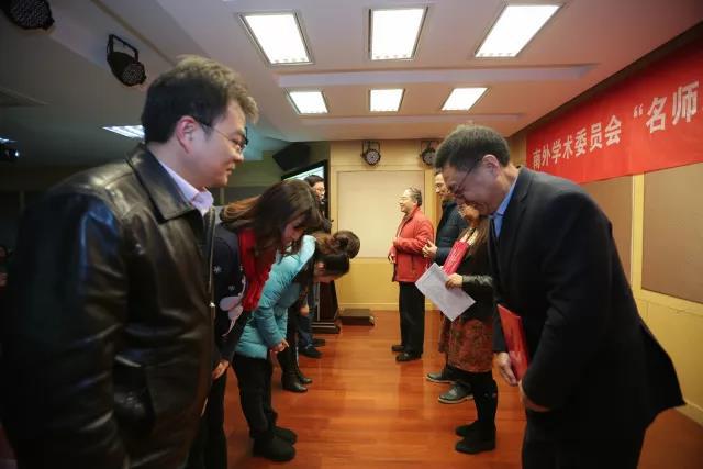 周弋副校长首先宣读了师徒结对名单和师徒结对协议书,而后由邹正校长给师傅们颁发聘书,徒弟向师傅行拜师礼,师徒合影。
