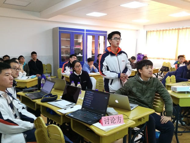 星期六的比赛,我队由王然首开纪录,评论方的高分使我们确立了领先的优势;许乔智在被迫选择不完全熟悉题目的情况下进行的反方报告也获得了赛场第一的高分。而来自高一(7)班的柯关关表现优异,沉着冷静地完成了15题“泡泡”的研究报告。