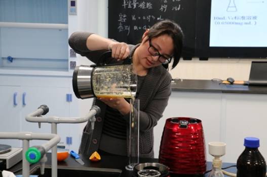 陈懿名师工作室成员张玉娟老师展示了选修6《实验化学》的拓展性课题《水果中维生素C含量的测定》的研究课。张老师的课以实验探究为主线,引导学生依据维生素C的结构和性质设计实验,从定性检验到半定量测定,再到定量测定,突出了对学生实验探究能力的培养。
