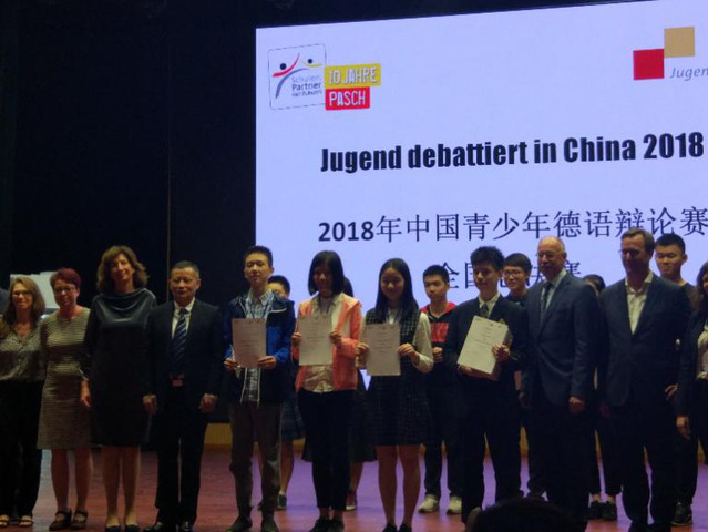 本次比赛分为三轮,前两轮预赛总分决出四强进入最后的全国总决赛。在总决赛中,四位选手针对“现金是否应该被废除”展开了激烈而精彩的辩论。最终,经过一番唇枪舌战,威尼斯官网高一(8)班曹毓堃同学获得了全国第三的好成绩。这是威尼斯官网德语学生第四次进入四强,可喜可贺!第一、二、四名,则分别由上海外国语学校、玉溪一中和成都实验外国语学校的同学斩获。