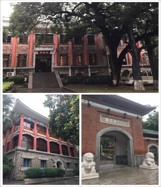 次日清晨,气温骤降,羊城笼罩在初夏的密雨中。大家顾不上旅途劳顿,兴致勃勃地走进了华南名校—广州市执信中学。该校始建于1921年,是孙中山先生为纪念民主革命家朱执信先生亲手创办的一所纪念性学校,创办董事会成员有廖仲恺、蔡元培、李大钊、何香凝等醍醐灌顶、耳熟能详的名人志士。执信中学科研处许文学主任代表学校热情地接待了我们,引领我们冒雨参观了执信中学以岭南风格为主调的美丽校园。