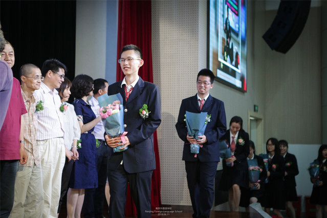 在南外,全体老师也像父母一般关心和爱护着南外学子。在这毕业分别之际,高三老师们向孩子们道出了自己的殷切祝福,上台接受了学生代表的献花。
