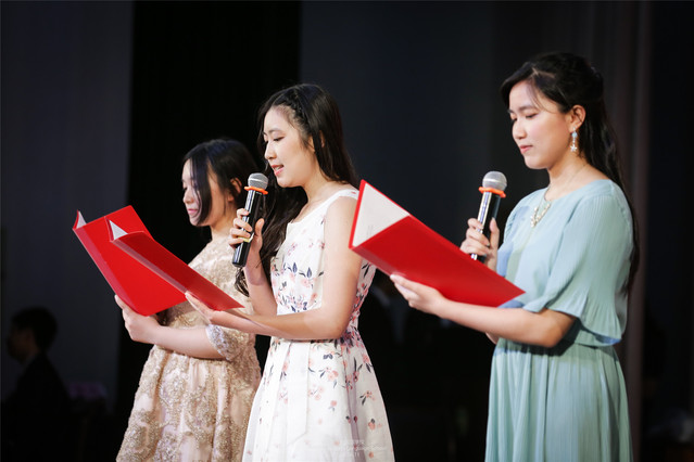 张思遥、陈㑇仪、吉利的诗朗诵《又雨》带着高三毕业生与母校做了一次诗意的话别,而何克杰、曹浩然、石一帆倾情演唱的《祝你一路顺风》则让全场高三学生不约而同地拿出手机,打开闪光灯,随着节拍挥舞了起来,再现出学农时令人感动的画面。