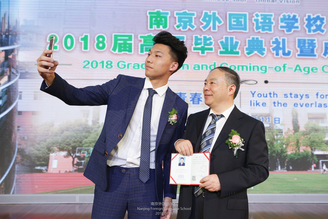 被耶鲁、哈佛双录取的徐瑄凰同学作为学生代表发言,“南外三年,各学生社团里留下了我们青春恣意的身影;南外三年,我们曾为准备高考、竞赛、刷托福、考SAT紧张过、奋斗过;南外三年,我们在书本知识与实践中不断完善自我;南外三年,无论是学校的体育馆、小径旁,还是教室、食堂、实验室都曾有过我们的欢笑与泪水。这既漫长又短暂的南外时光已化做无形的胶片,将永远珍藏在我们的脑海中。”面对恩师,她说:一日为师,终生不忘!面对同窗,她说:一朝同窗,一生挚友!