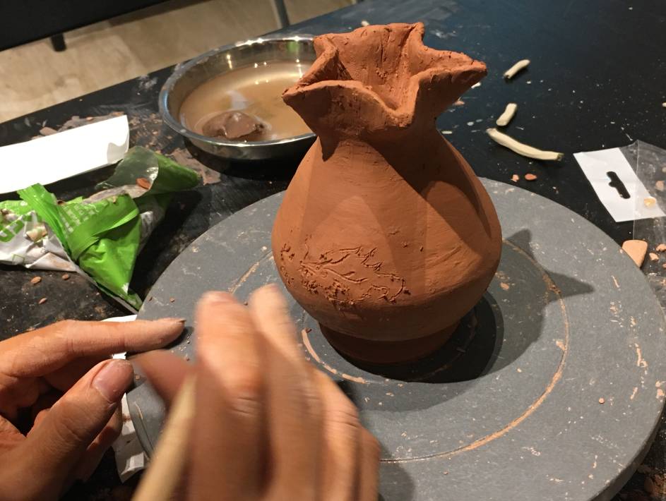 随后学生在美术老师曹启海的带领下,尝试用紫砂泥雕刻制作瓦当纹饰,学生们有的选择人面纹,有的选择莲花纹,还有的加入了自己的小创意。“小石榴”课堂犹如给孩子的历史学习开启了一扇窗,体验探究是历史学习最积极的动力。
