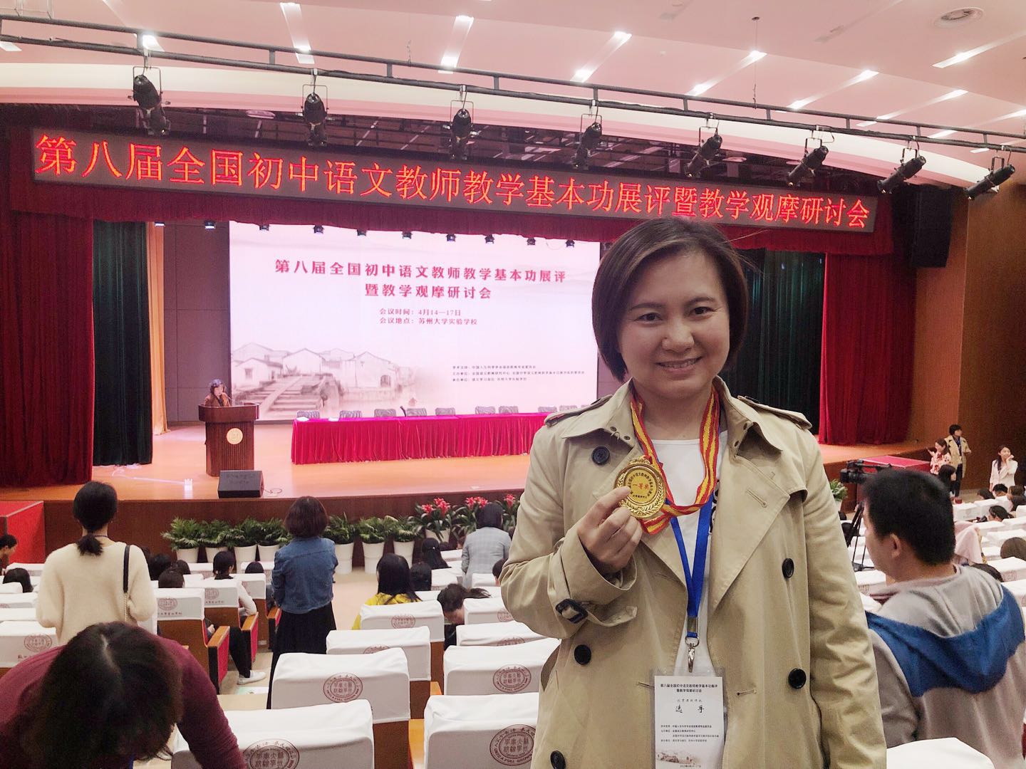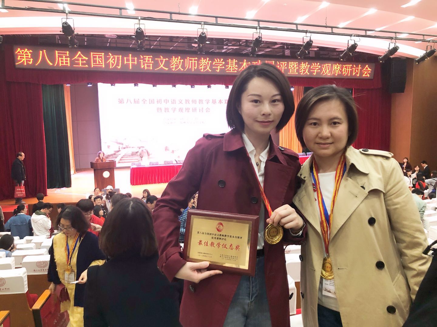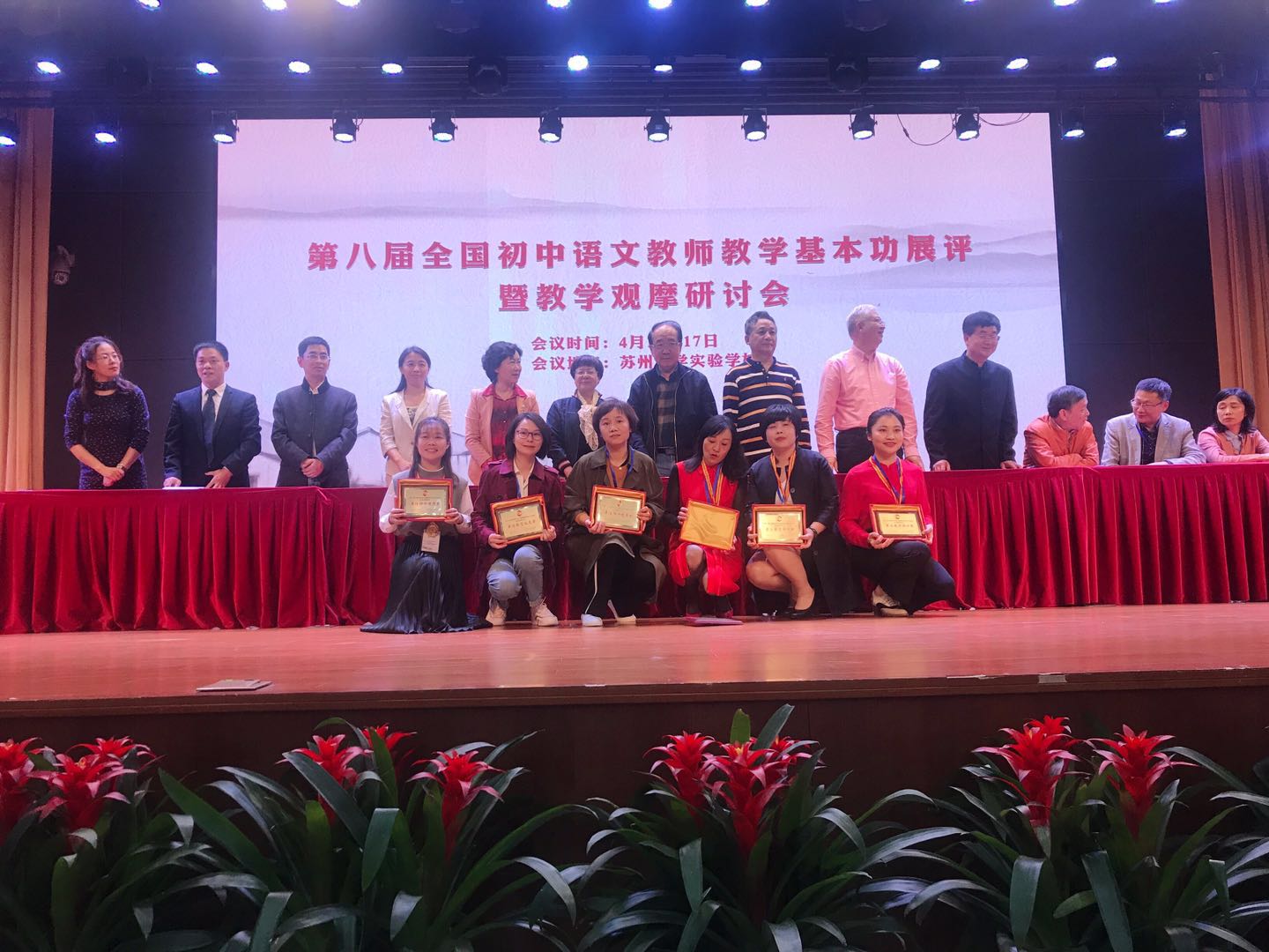 2019年4月14日至17日,第八届全国初中语文教师教学基本功展评暨教学观摩研讨会在苏州隆重举办。威尼斯官网洪瑜老师和刘慧老师代表江苏省参加教学基本功展评优秀课例评比(光盘课)均获一等奖,洪瑜老师获得了最佳教学仪态奖。在大会论文评比中,洪瑜老师论文获一等奖,刘慧老师论文获二等奖。