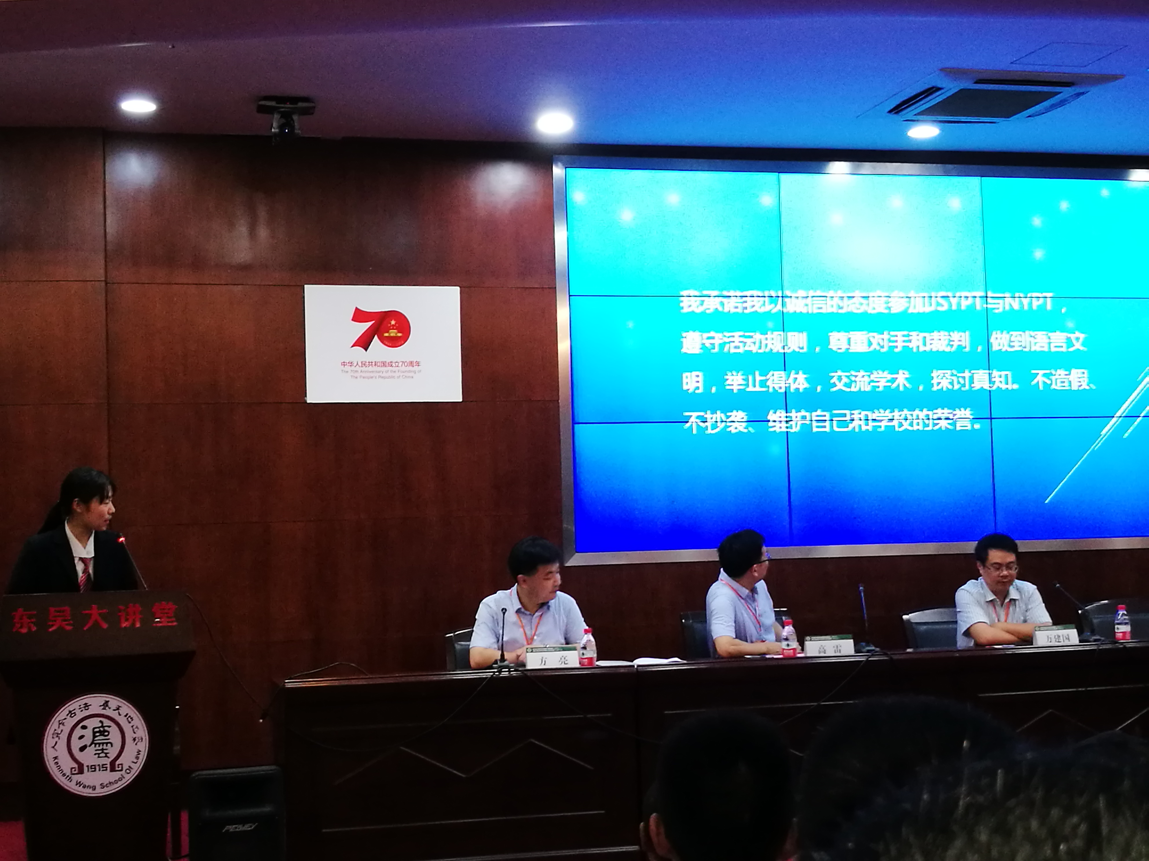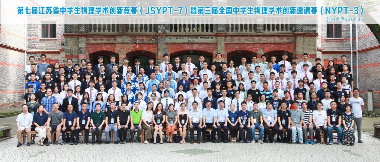 2019年7月16日至20日,第七届江苏省中学生物理学术创新竞赛(JSYPT-7)暨第三届全国中学生物理学术创新邀请赛(NYPT-3)于苏州大学举行,38238a威尼斯欢迎你圆桌武士队,38238a威尼斯欢迎你敏而好学队参与比赛,分别取得了第二名和第四名的好成绩,最终分别被评为特等奖和一等奖第一名!如此佳绩是38238a威尼斯欢迎你指导老师、优秀学生和诸多相关参与老师共同努力的结果,是心血和汗水的结晶。