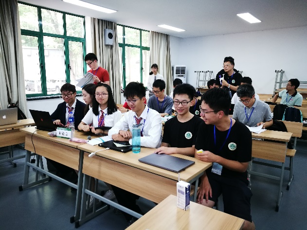 交流过后,表现突出的同学们被选拔出来,组成了圆桌武士队、敏而好学队这两支实力强劲的队伍。在之后的几个月里,队里的同学一起探讨、同心共进,完成了赛前的充分准备。这样两支代表南外物理思辨水准的光荣队伍于7月16日前往苏州比赛。