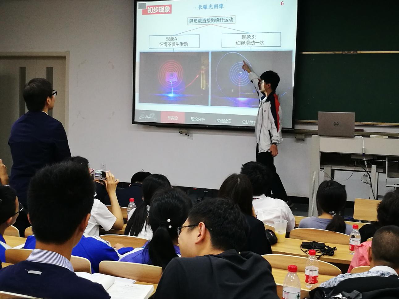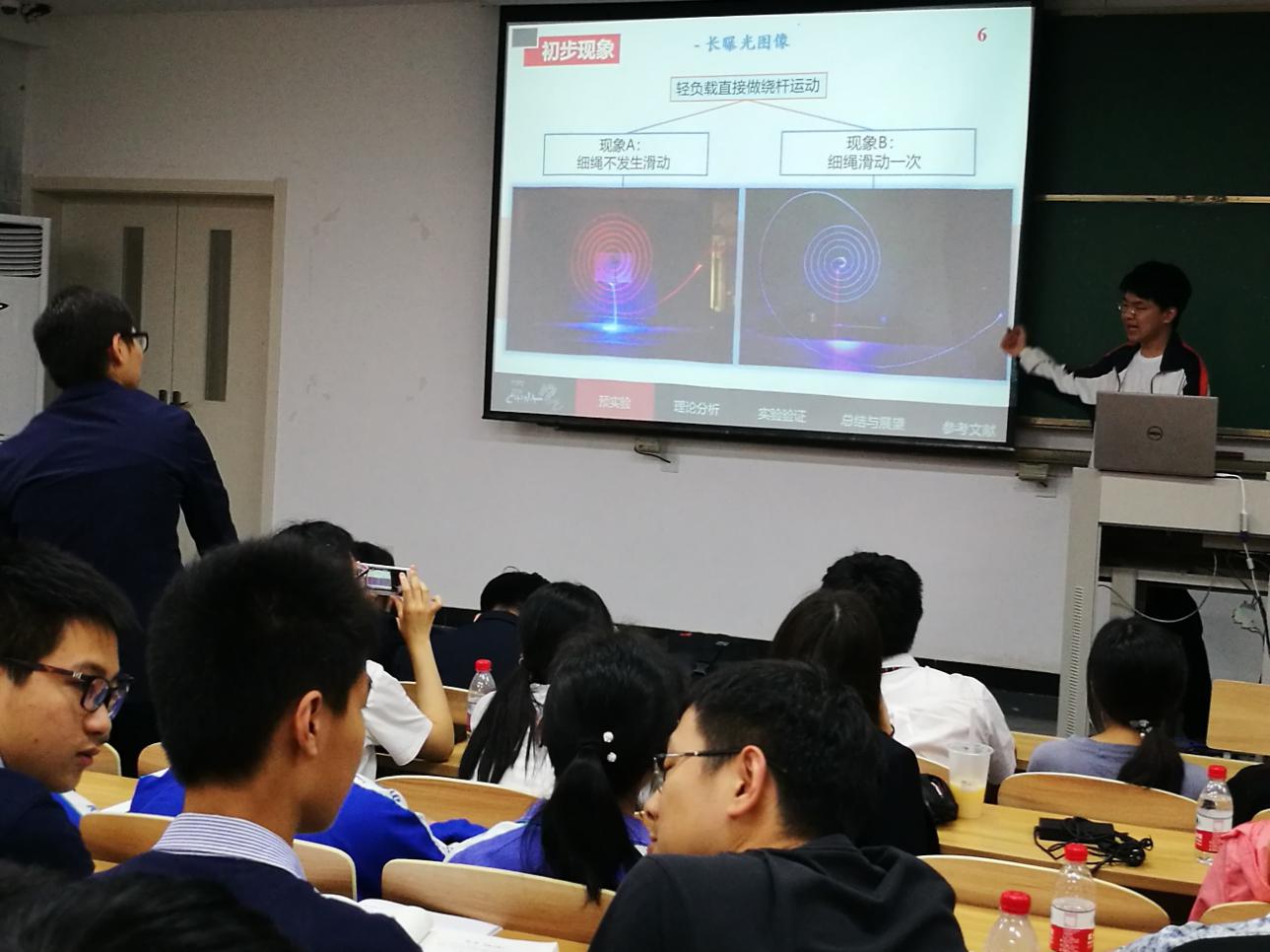 在比赛之余的PT培训活动中,徐吉恺和刘天翼两位入选过国家集训队的同学为我们讲解了他们在国家级或国际赛事中的两道题目——陀螺仪特斯拉计与循环摆。他们演讲时自信、沉稳的台风很值得大家学习。在展示的最后,他们俩还与台下听众互动,解答各种疑问,一同探寻PT的精髓。
