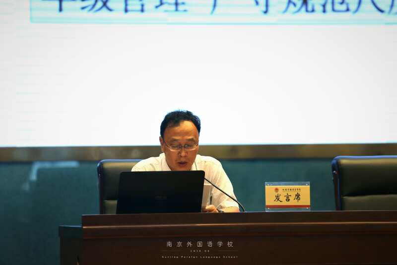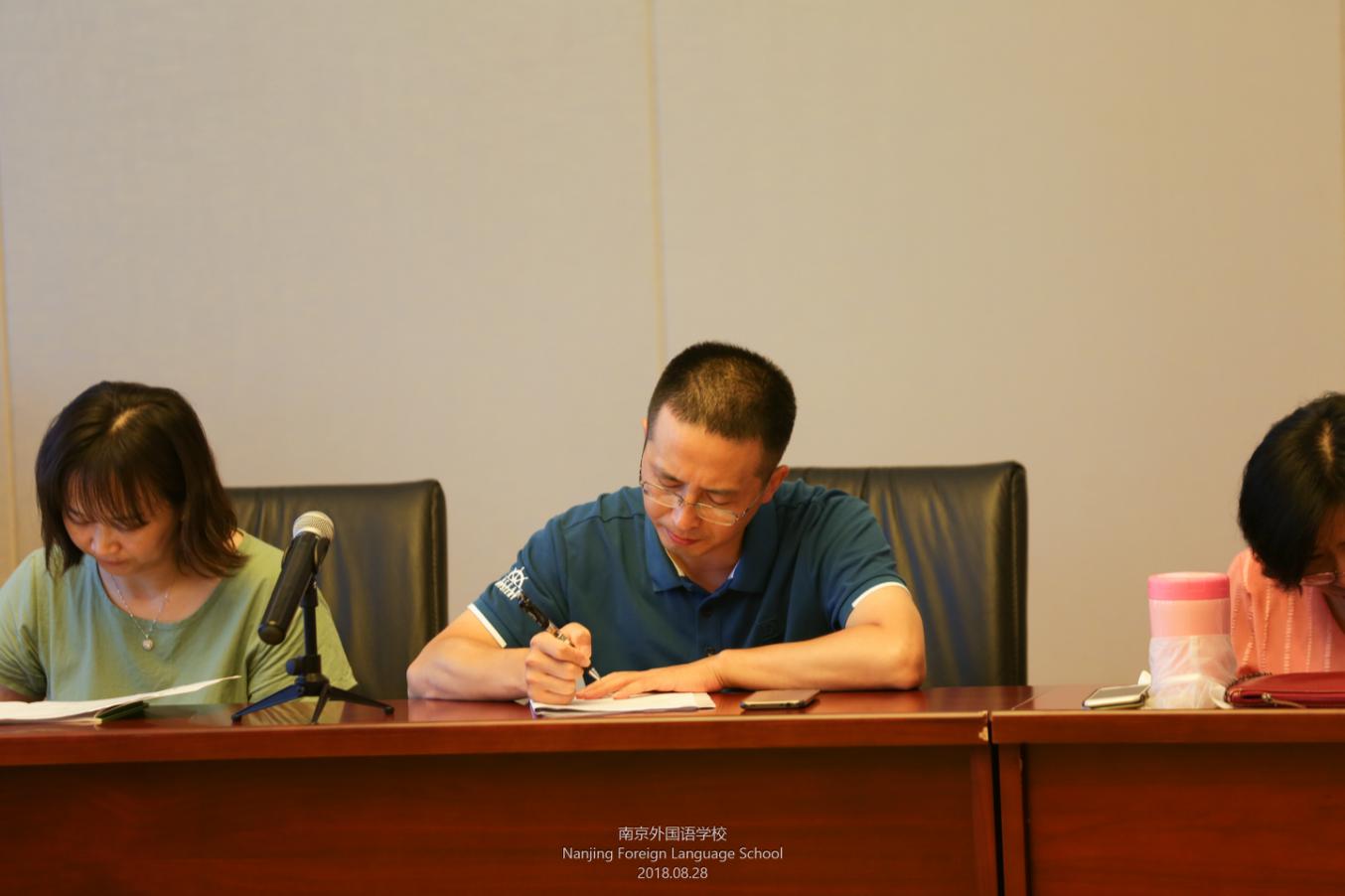 二十六号下午,在周弋副校长的主持下,蔡自强老师先向大家做了2018届初三毕业班的工作汇报。他发言的主题是管理有讲究,落实有力量。在管理上讲究“凡事预则立,不预则废”、讲究“没有规矩不成方圆”;落实的力量源于“人心齐泰山移”、源于“海纳百川有容乃大”。回望2015-2018三年,工作平稳有序,过程中虽也有波折,但最后中考成绩不俗,也算是为南外增添了光彩。年级工作要说有什么特色,其实就是全体老师对南外的这份感情而迸发出的责任感,带着这份爱与压力,一忙就是三年。