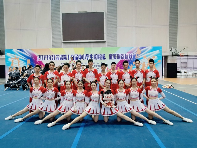 2019年11月29日至30日,威尼斯官网高一及高二啦啦操队员在体育组倪霞老师、张利老师、唐秀娣老师和张僖老师的带领下,代表学校在江苏省常州高级中学参加了江苏省第十九届中小学生啦啦操、健美操锦标赛,并在比赛中取得佳绩。